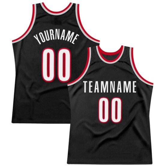 Custom Black White-Red Authentic Throwback Basketball Jersey
