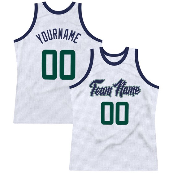 Custom White Hunter Green-Navy Authentic Throwback Basketball Jersey
