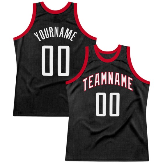 Custom Black White-Red Authentic Throwback Basketball Jersey