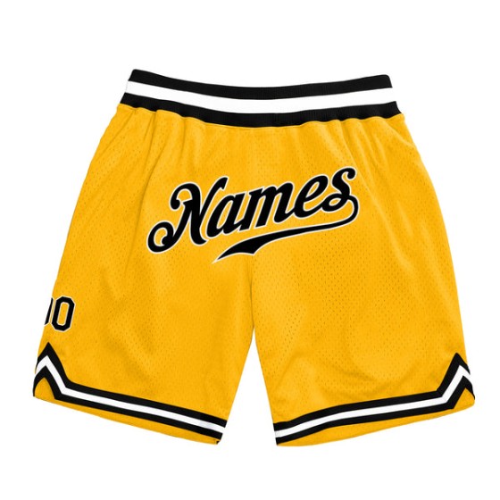 Custom Gold Black-White Authentic Throwback Basketball Shorts