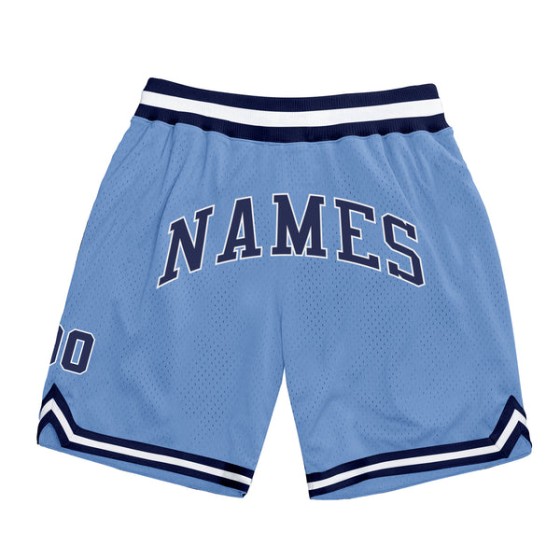 Custom Light Blue Navy-White Authentic Throwback Basketball Shorts