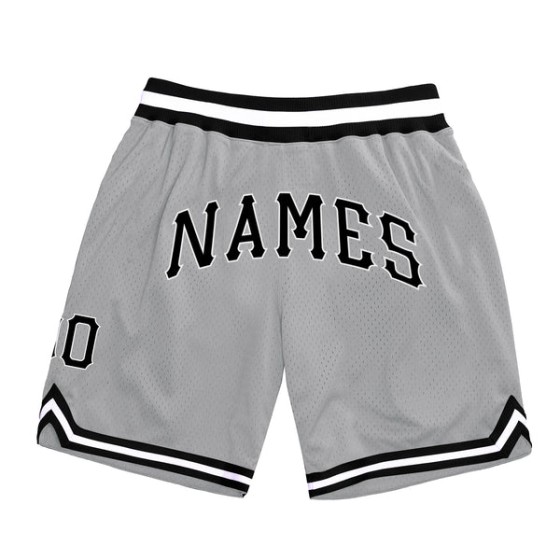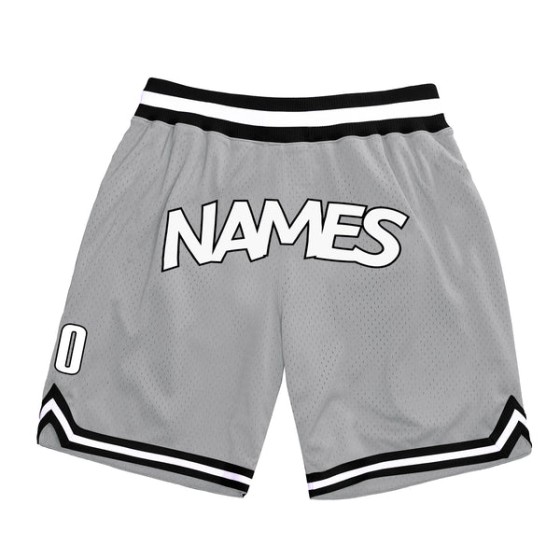 Custom Silver Gray Black-White Authentic Throwback Basketball Shorts