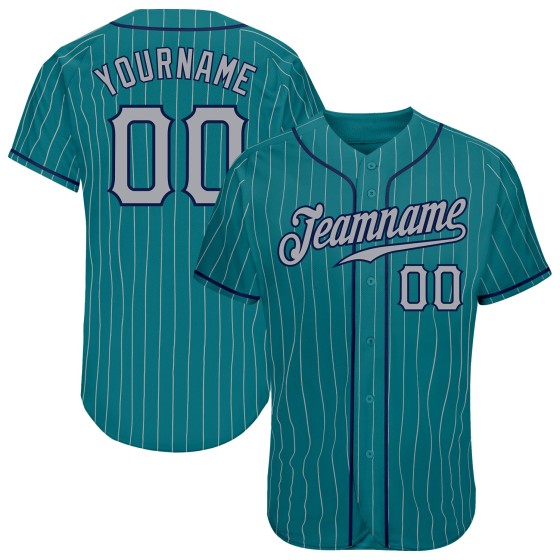 Custom Teal Gray Pinstripe Gray-Navy Authentic Baseball Jersey